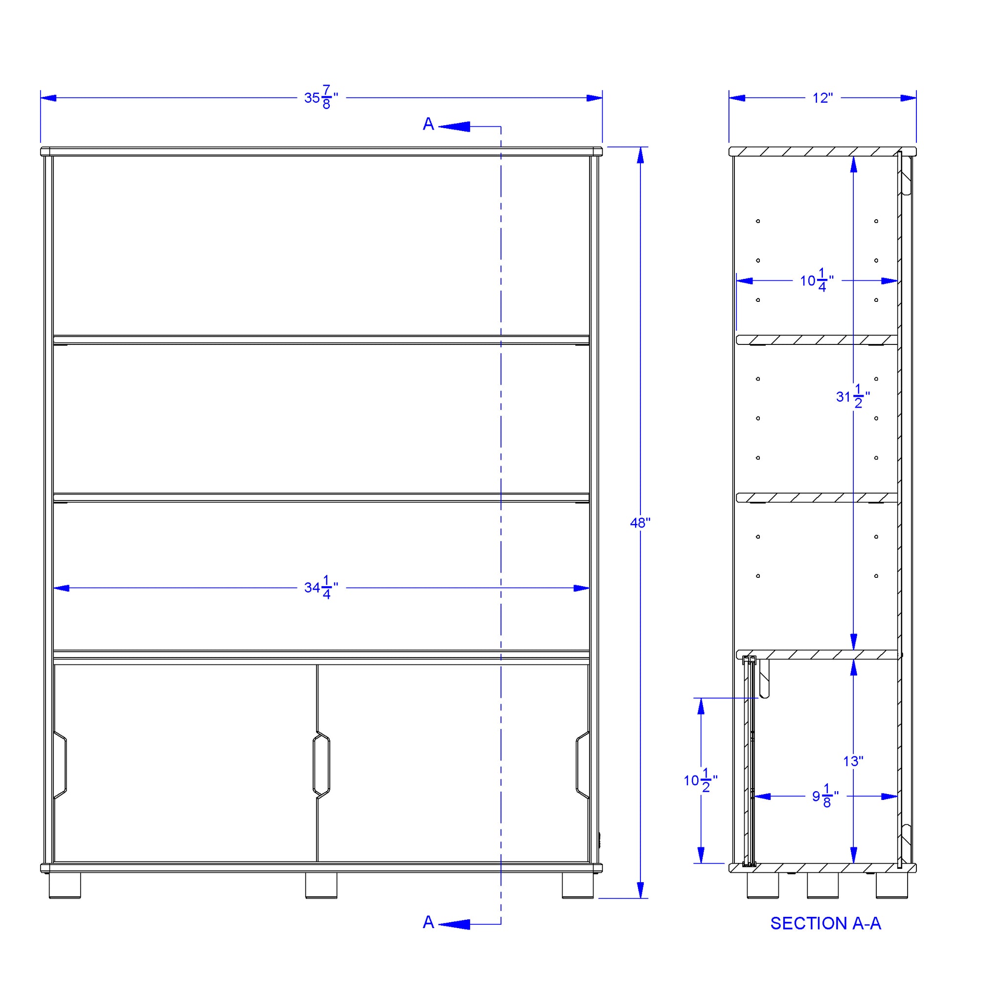 Dimensions: 48" High x 36" Wide x 12" Deep