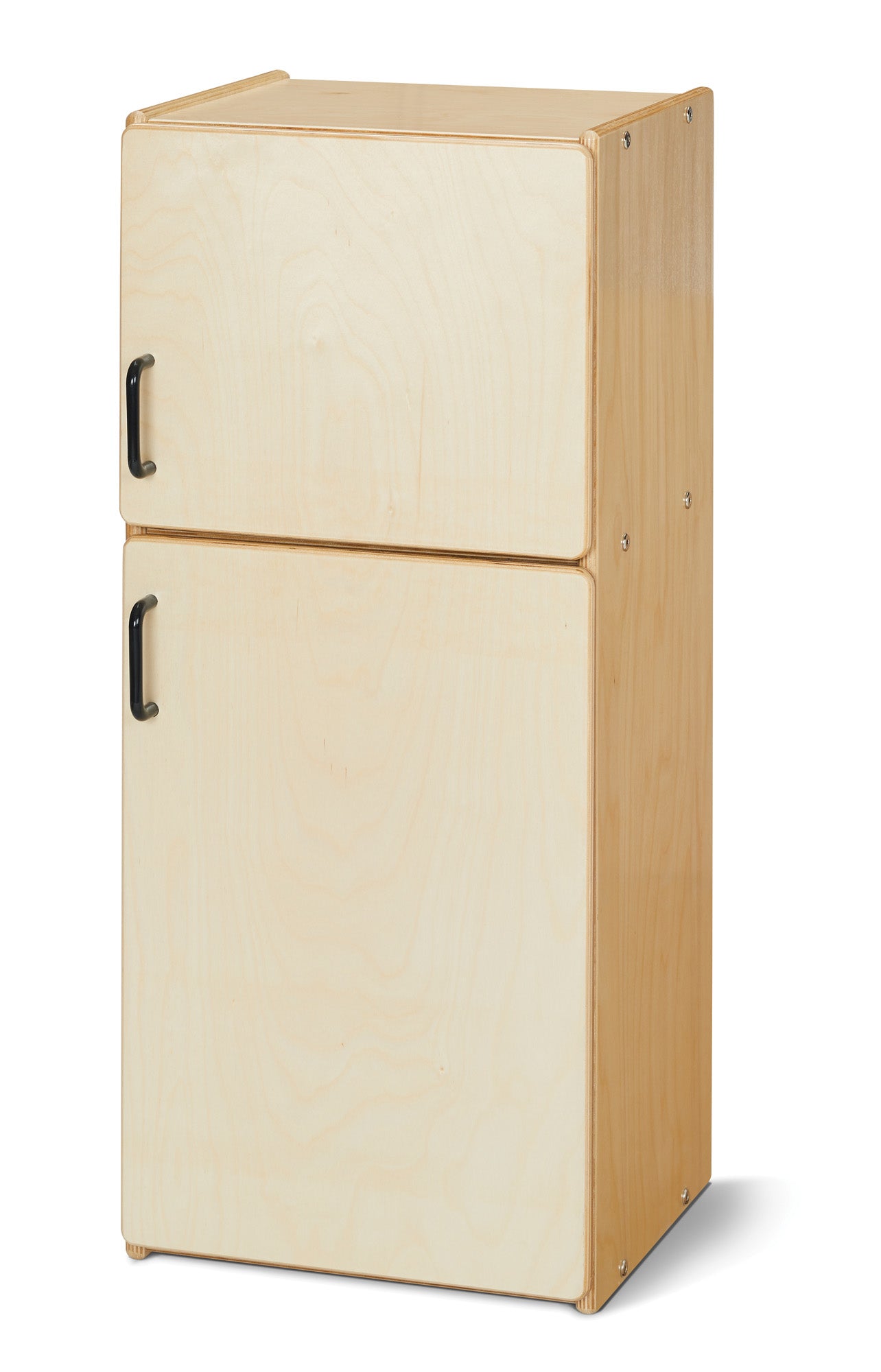 This Ready-to-Assemble Refrigerator with Freezer is perfect place for kids to put their play food. Soft-close hinges prevent doors from slamming and keep little finger safe.