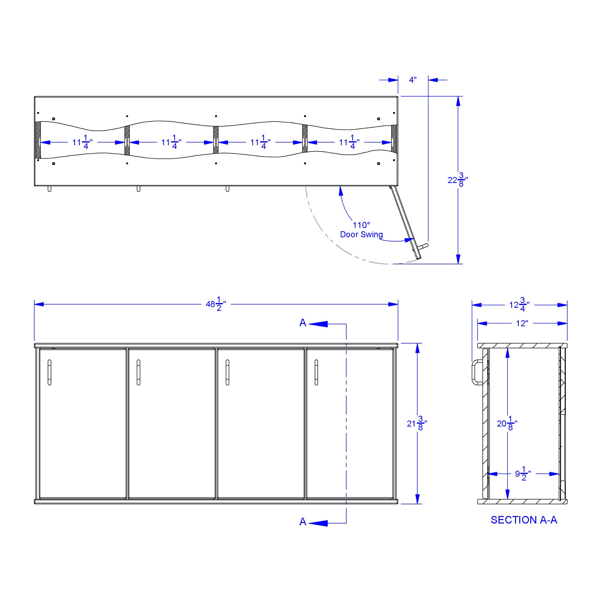 Dimensions: 21.5" High x 48.5" Wide x 12" Deep