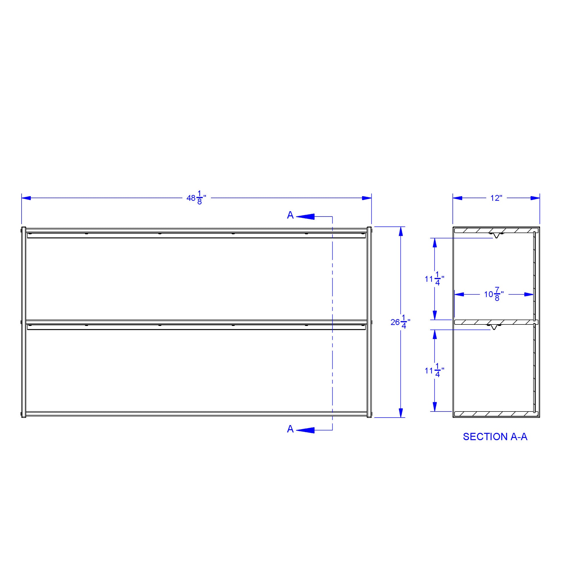 Dimensions: 26.5" High x 48" Wide x 12" Deep