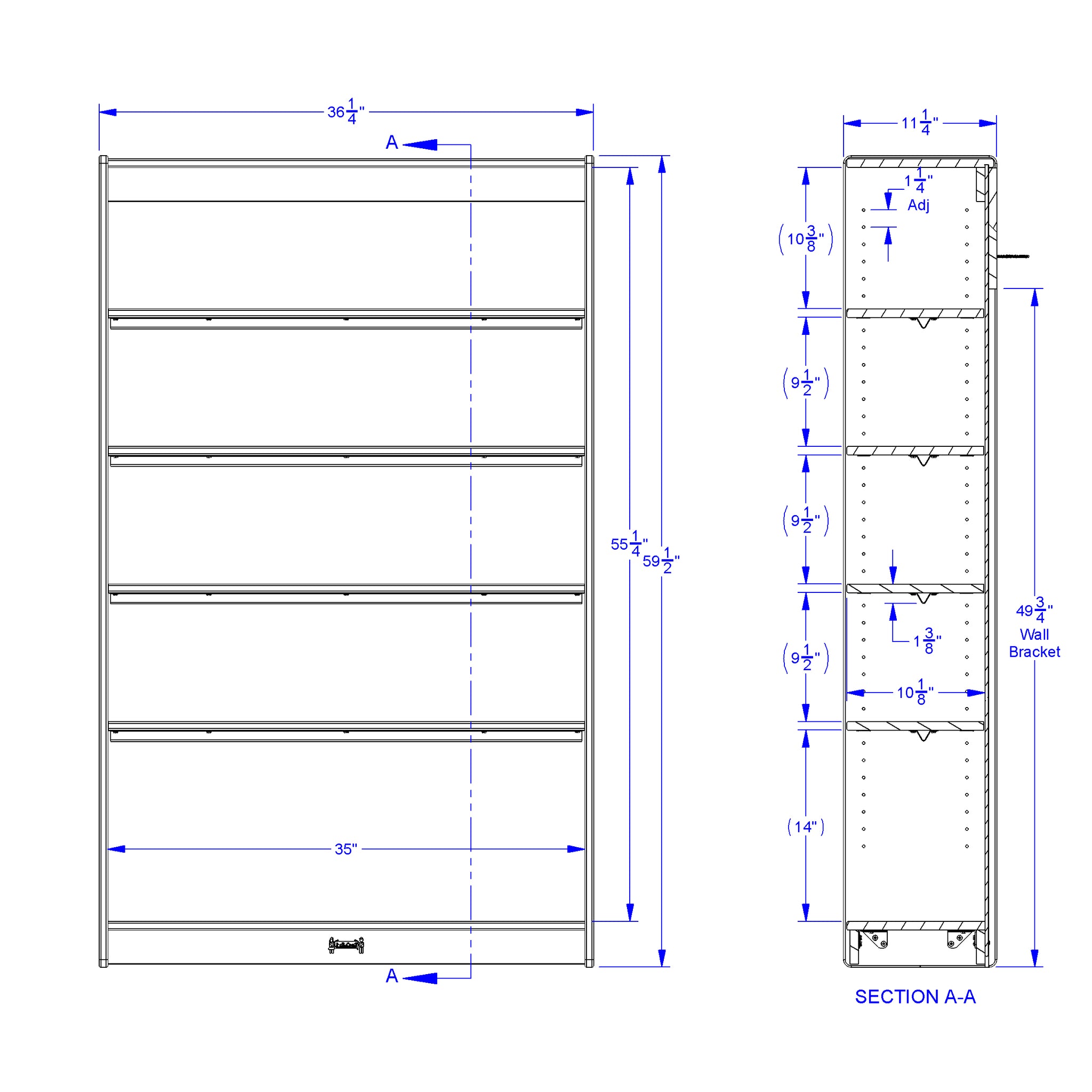 Dimensions: 59.5" High x 36.5" Wide x 11.5" Deep